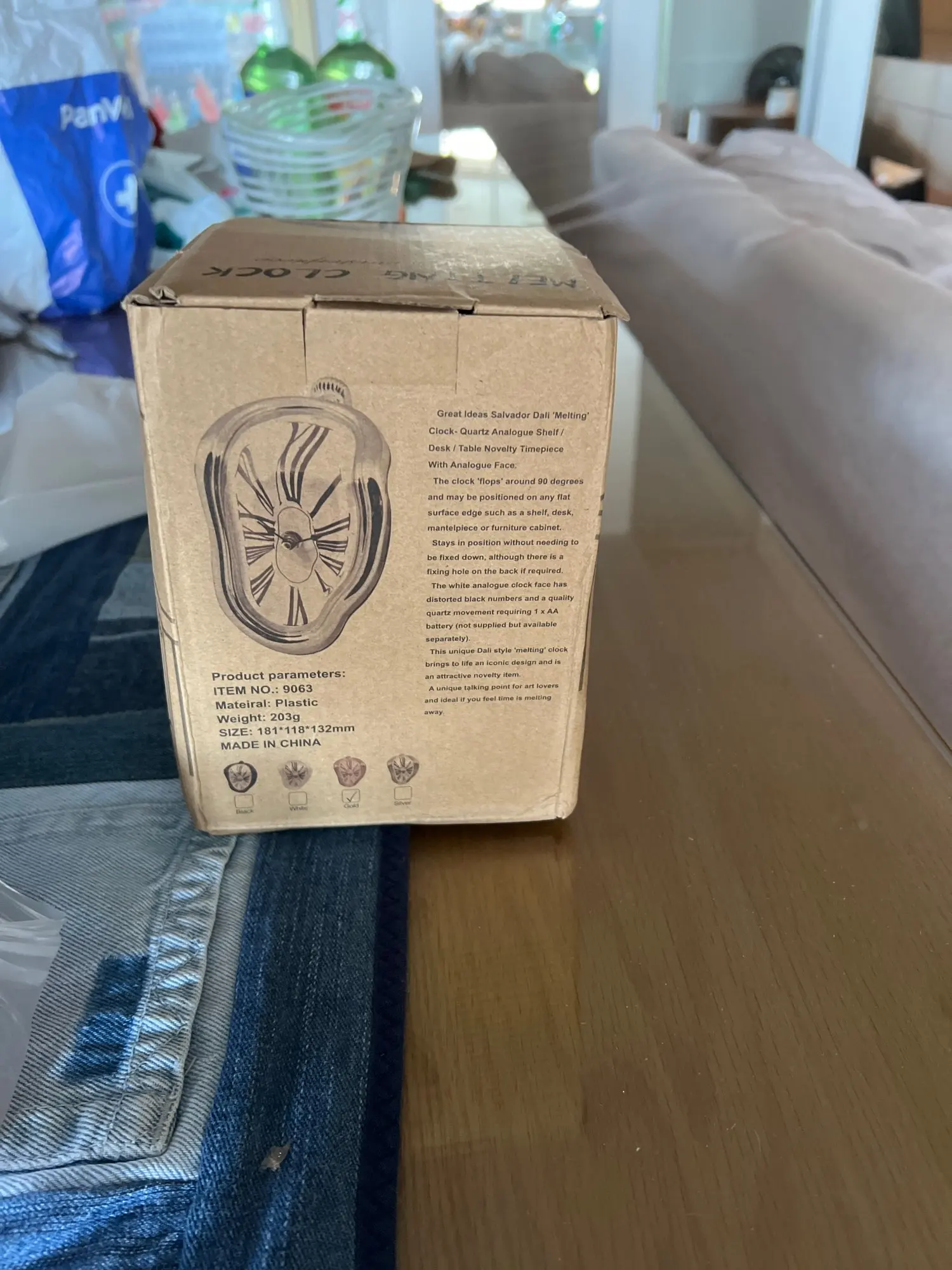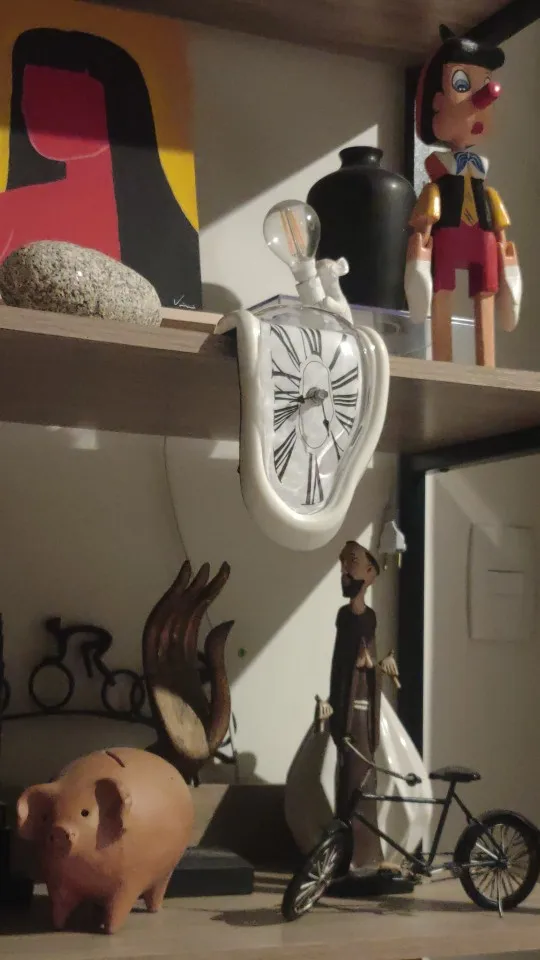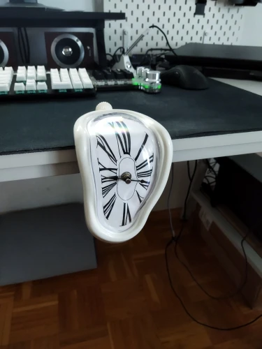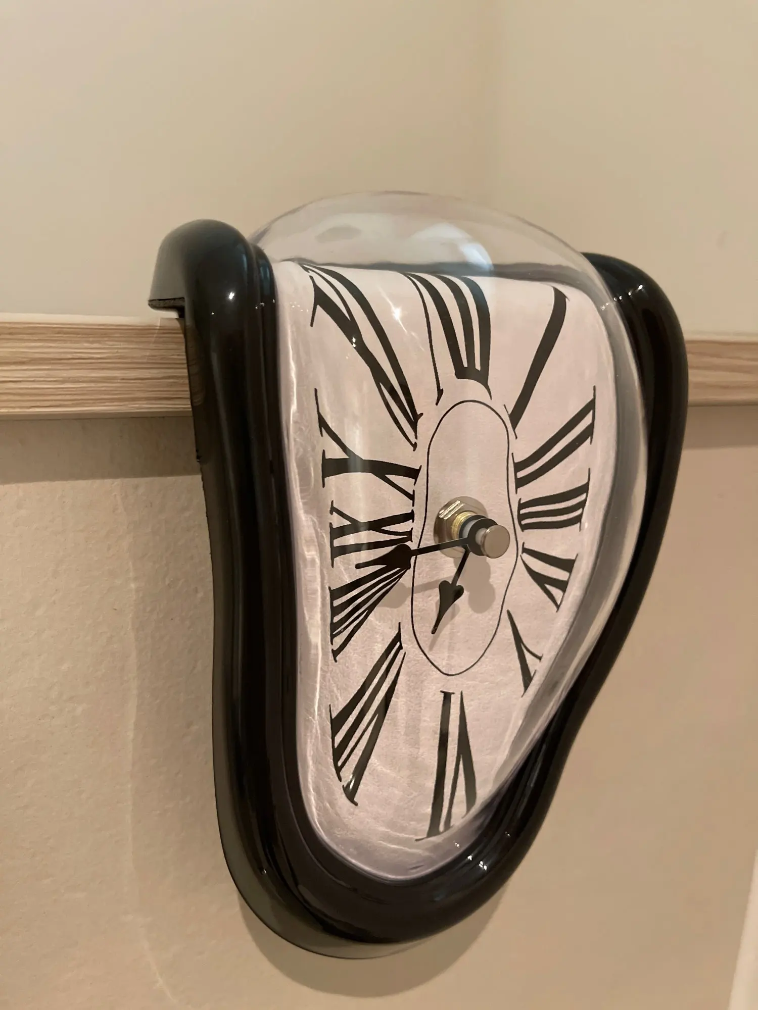 This unique wall clock is not just a time-telling device, but also a decorative piece that adds character and personality to any room. It features a distorted, melting frame that creates a whimsical illusion.